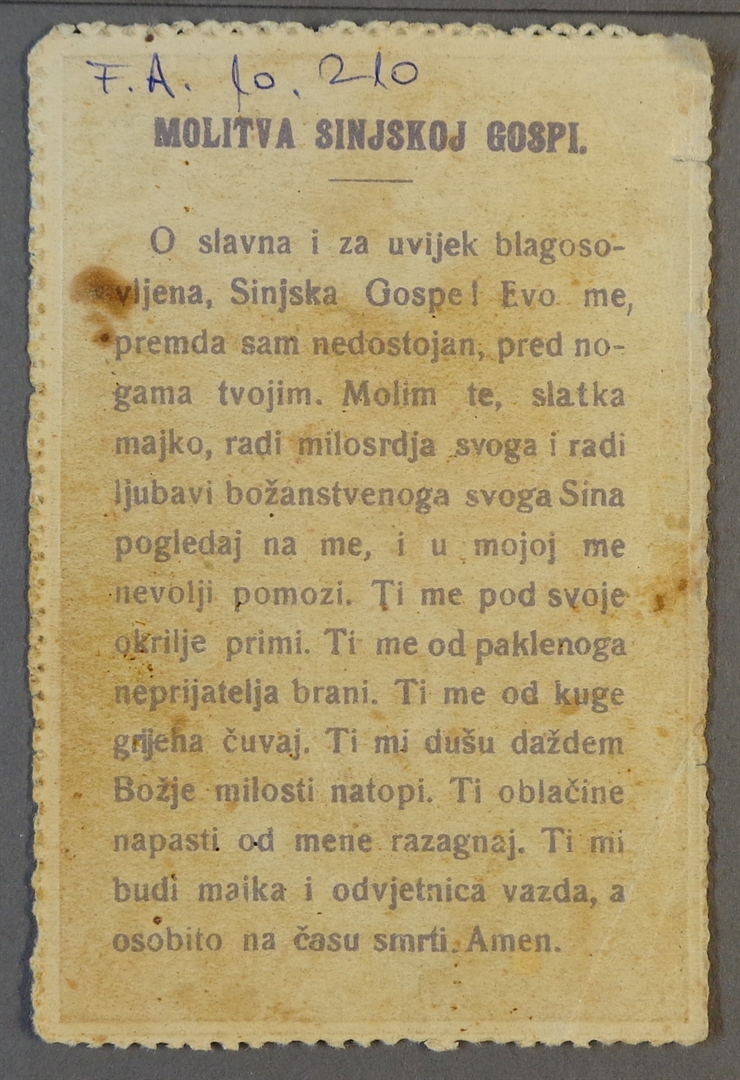 Sveta sličica; Molitva Sinjskoj Gospi