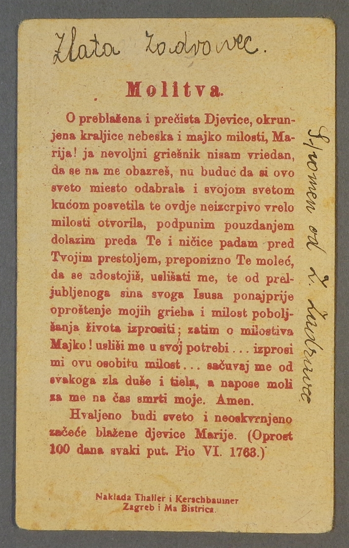 Sveta sličica; Čudotvorna slika Marije Bistrićke
