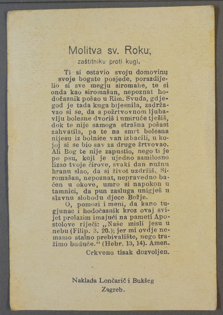Sveta sličica; Sveti Roko moli za nas