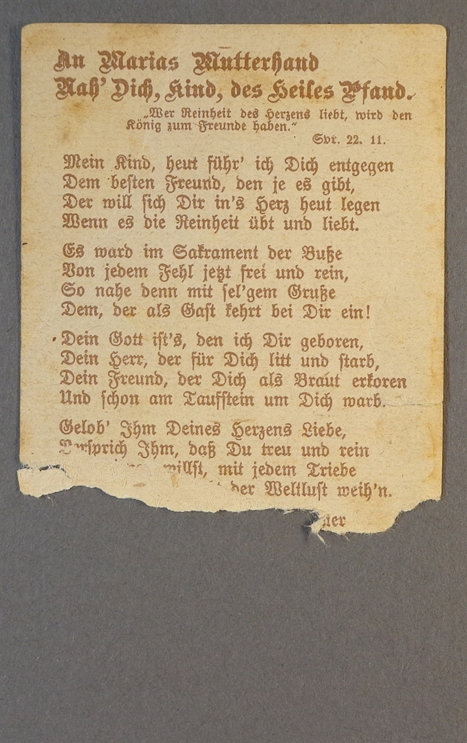 Sveta sličica; An Marias Mutterhand Nach dich, kind, des heiles Pfand
