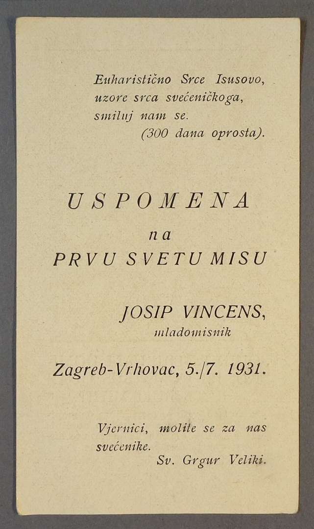 Sveta sličica; Quid retribuam Domino, pro omnibus quae retribuit mihi?; Uspomena na prvu svetu misu