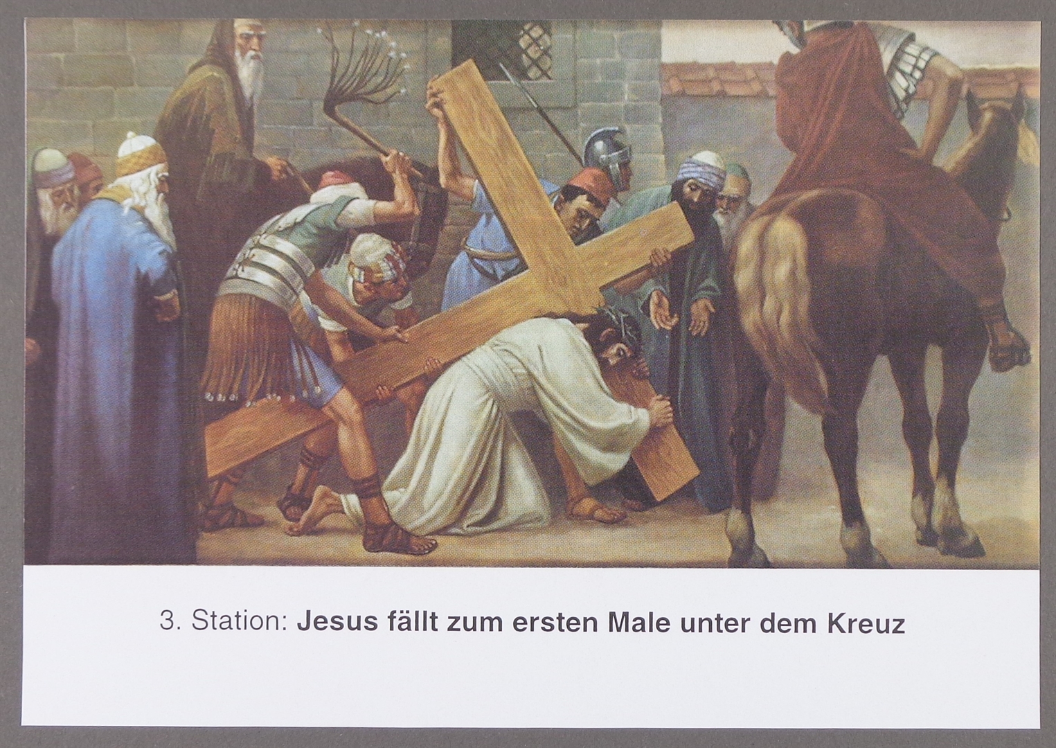 Sveta sličica s 3. postajom Križnoga puta; 3. Station: Jesus fällt zum ersten Male unter dem Kreuz
