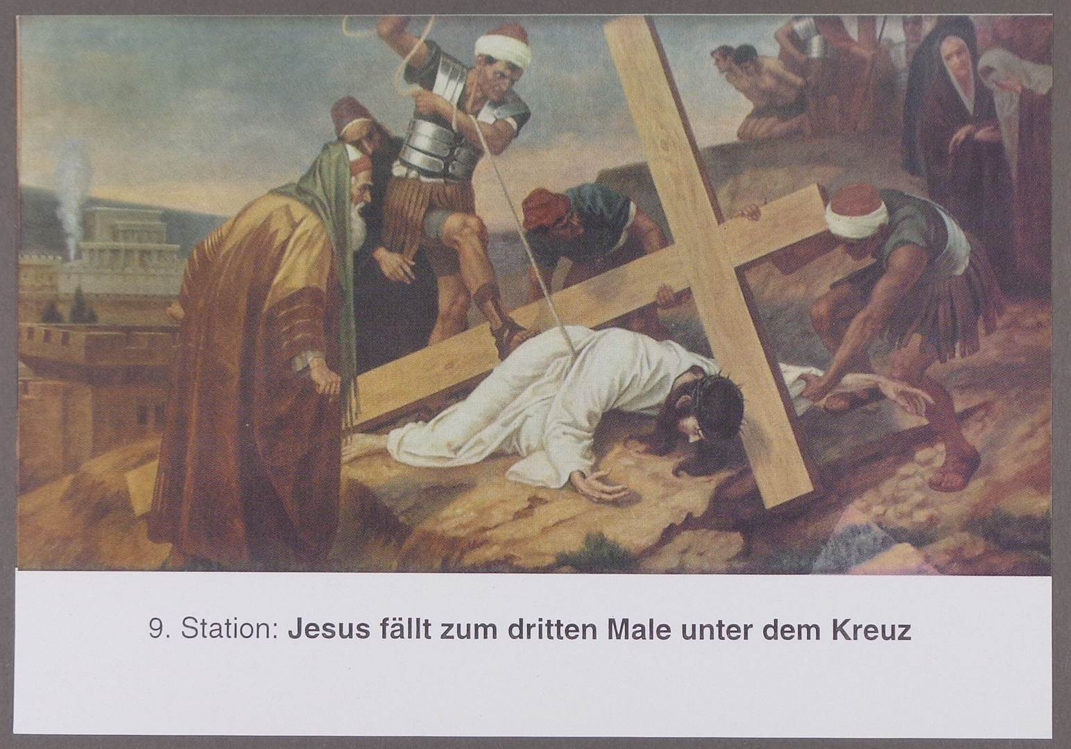 Sveta sličica s 9. postajom Križnoga puta; 9. Station: Jesus fällt zum dritten Male unter dem Kreuz