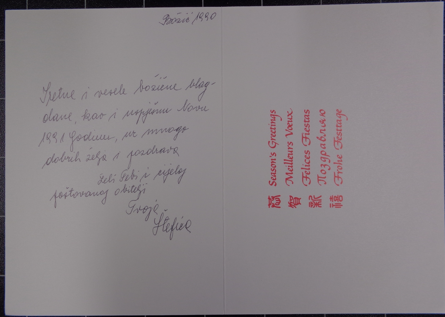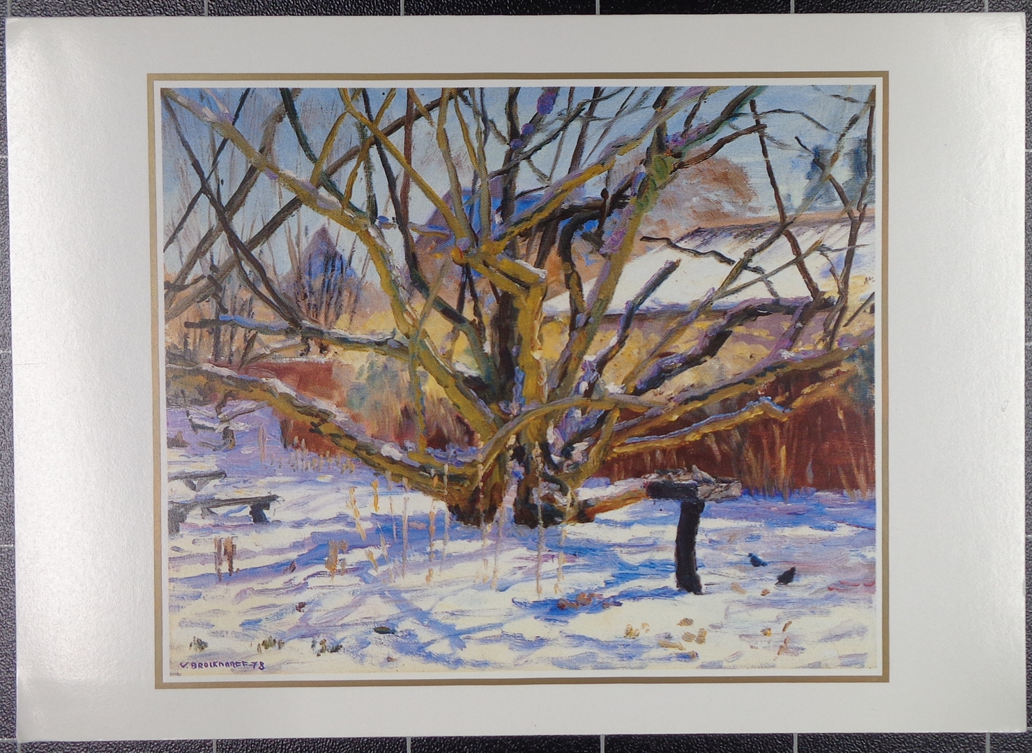 Božićno-novogodišnja čestitka; Bird Board in Snow (Mangeoire pour oiseaux en hiver/El komedero des los pájaros en la nieve/Vogelstange in Schnee)