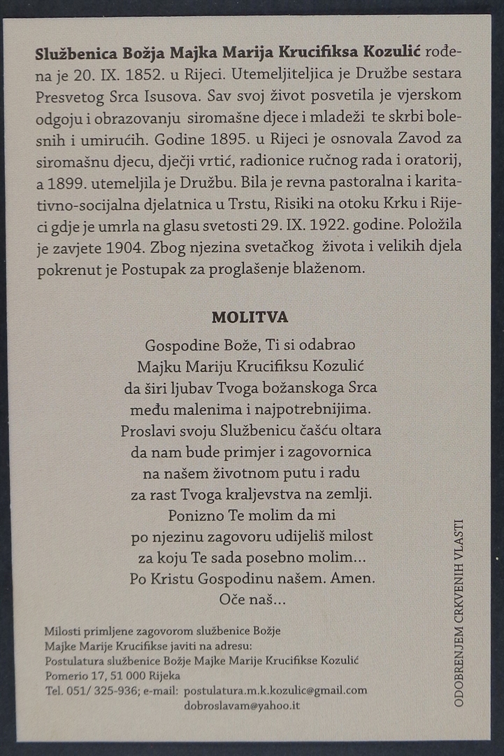 Sveta sličica; Službenica Božja Majka Marija Krucifiksa Kozulić