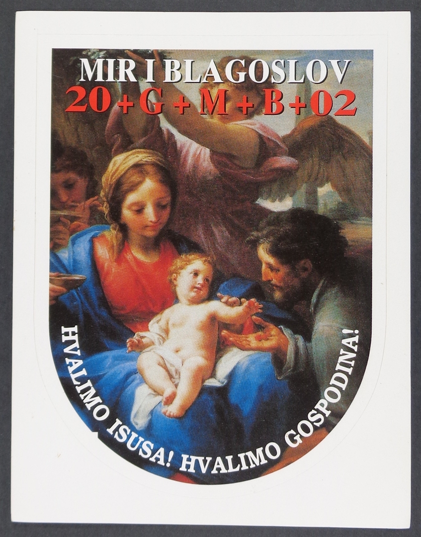 Sveta sličica, naljepnica; Mir kući ovoj 20+G+M+B+02; Hvalimo Isusa! Hvalim Gospodina!