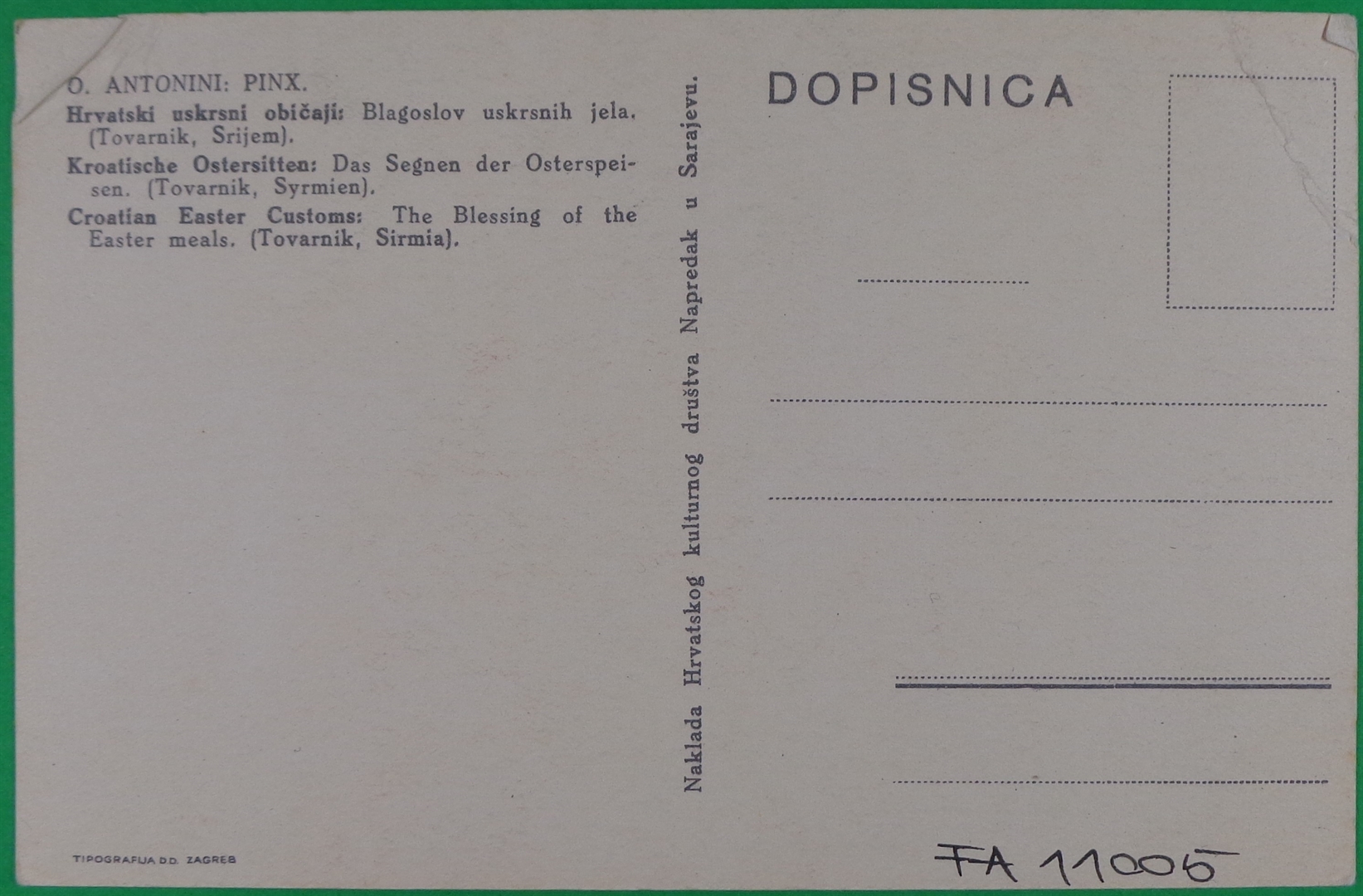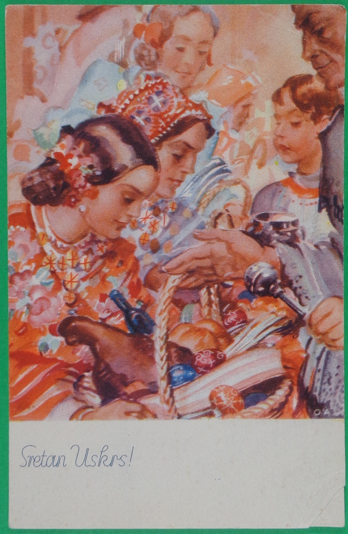 Uskrsna čestitka; Hrvatski uskrsni običaji: Blagoslov uskrsnih jela. (Tovarnik, Srijem)