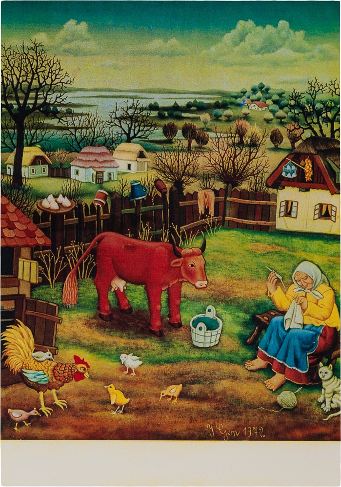 Uskrsna čestitka; Žena šije