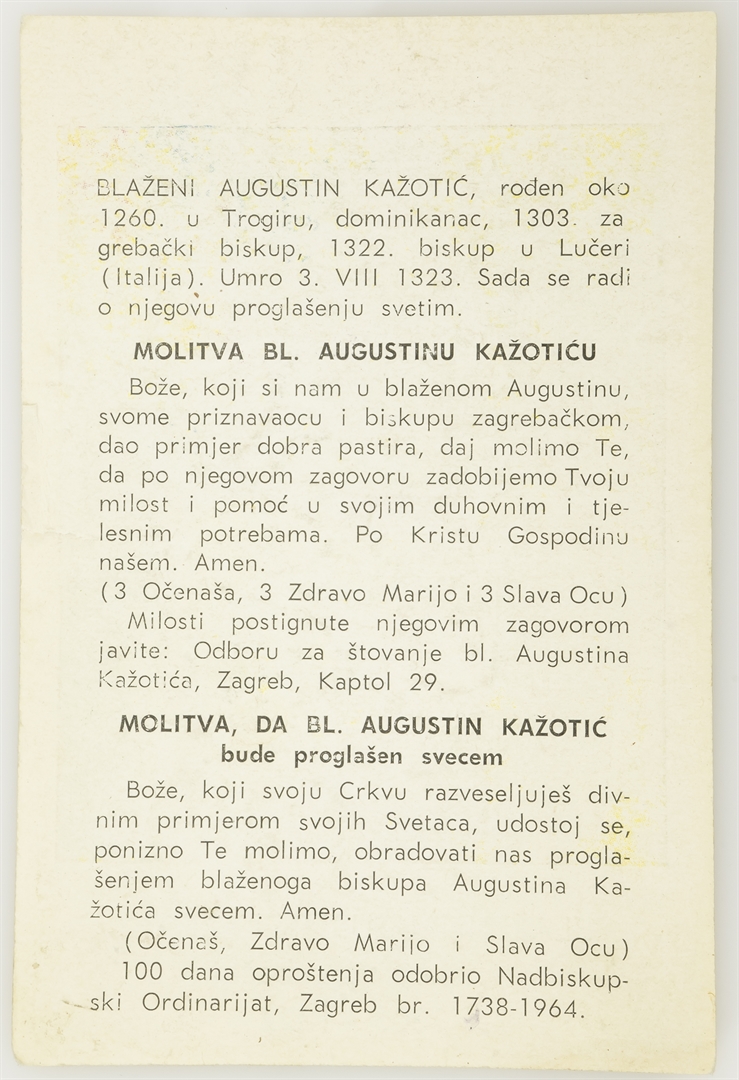 Sveta sličica; Blaženi Augustin Kažotić biskup zagrebački