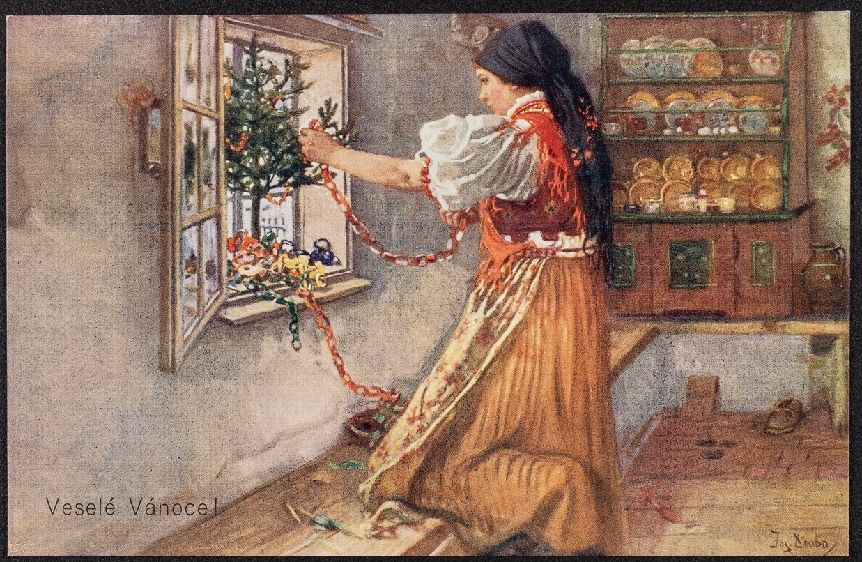 Božićna čestitiks; Zdobení vánočního stromku