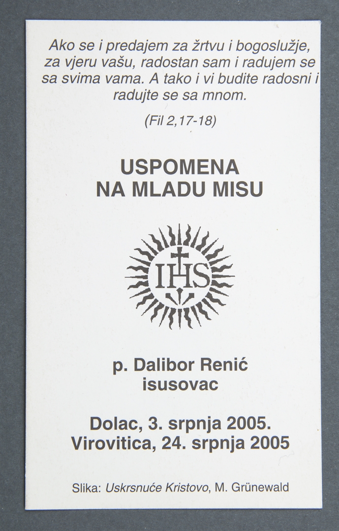 Uspomena na mladu misu; Sveta sličica; Uskrsnuće Kristovo