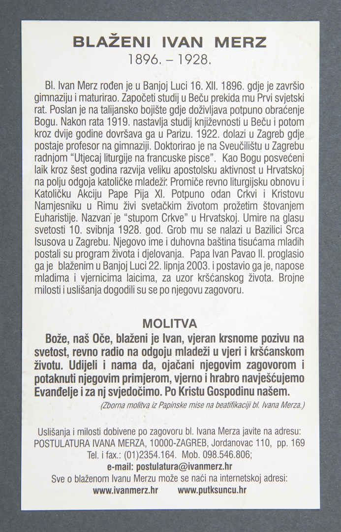 Blaženi Ivan Merz; Sveta sličica