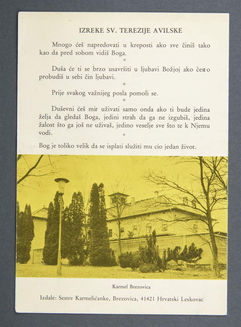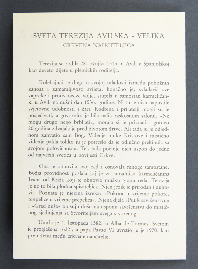Terezija Avilska velika karmelićanka i naučiteljica Crkve; Sveta sličica