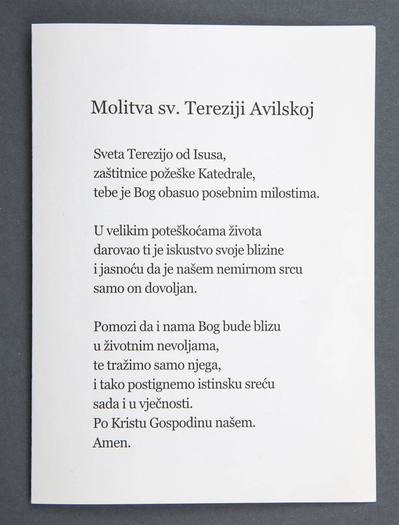 Sveta Terezijo Avilska, zaštitnice požeške Katedrale, moli za nas!; Sveta sličica