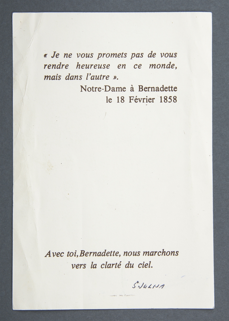 Souvenir du Centenaire de la mort de Saint Bernadette; Sveta sličica